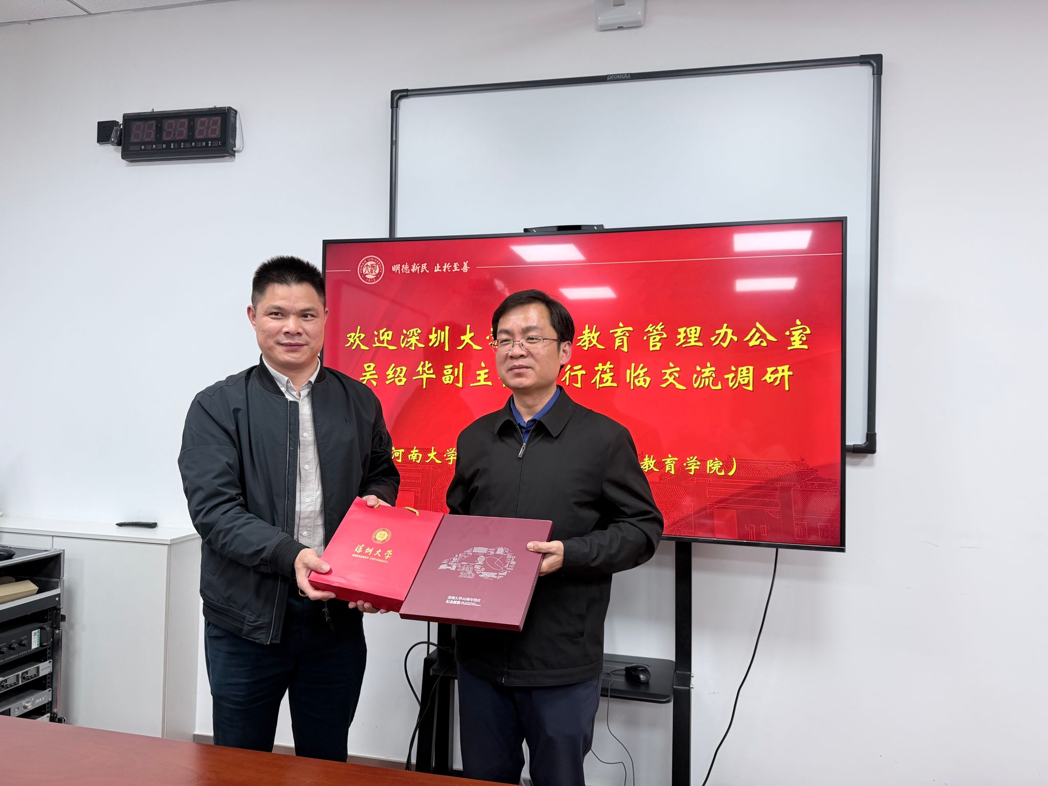 韦胜军书记对深圳大学同仁的到访表示热烈欢迎。他简要介绍了河南大学继续教育学院的办学历史、发展现状以及在服务地方人才培养方面所承担的角色。他表示,“继续教育是构建全民终身学习教育体系的重要组成部分。深圳大学立足改革开放前沿阵地,开展的继续教育工作,理念先进,特色鲜明,很多经验值得我们学习借鉴。希望以此次调研为契机,搭建起两校继教领域互通有无、携手共进的桥梁,共同应对发展中的挑战,探索提质增效的新路径”。会上,与会人员观看了我校校情片《大学之道》。双方围绕新形势下继续教育的管理与发展进行了广泛而深入的交流,并就共同面临的发展瓶颈与改革难点交换了意见。